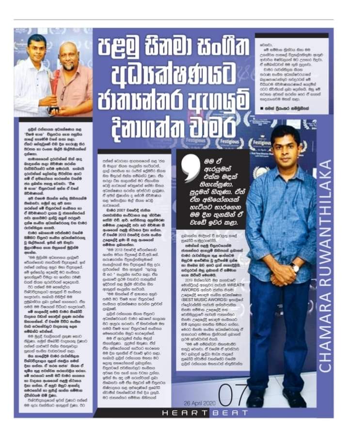 2024 වර්ෂයේ ලංකාවේ සියලුම රූපවාහනී නාලිකා වල විකාශය වූ ටෙලිනාට්‍ය අතරින් ස්වාධීන රූපවාහිනියේ (ITN) සේවයෙන් විකාශය වූ ජිවිතයේ එක් දවසක් ටෙලිනාට්‍ය යේ සංගීත අධ්‍යක්ෂණය සඳහා හොඳම සංගීත අධ්‍යක්ෂණයට හිමි සුමති සම්මානය අප විද්‍යාලයීය චාමර ගුරු පියාණන් විසින් දිනා ගන්නා ලදී.චාමර ගුරු පියාණනී ඔබට අපගේ උණුසුම් සුභ පැතුම් !!